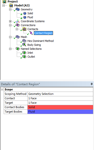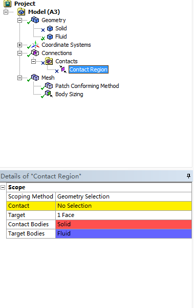 各位大神,本人用CFX遇到一个小问题,还请多多帮忙啊。。 模型已经建好,外面一层是固体,里面一层是液体,但是做流固耦合的时候,怎么默认的是fluid fluid interface?还请各位大神指点迷津啊~~~ ![]() 其中,红色的面表示耦合面。 1.png 2.png |