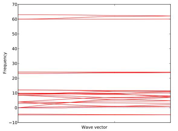 各位大神, 做了一个新结构,优化什么的都做了,是收敛 的,可是用phonopy + vasp 计算声子谱时出现了虚频,见图所示,我用vasp通过修改INCAR参数只计算伽马点的频率,最后四个依旧是负频,,这可怎么办呀,,求助大神,帮我想办法解决~ QQ截图20140609184751.jpg |