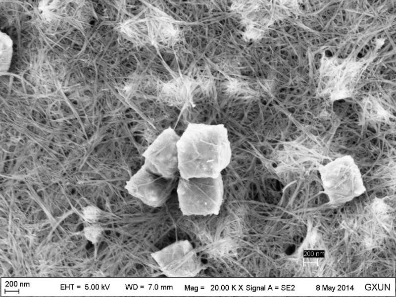按台湾国立清华大学黄喧益教授制备立方体氧化亚铜发现SDS很难洗,SEM图如下: