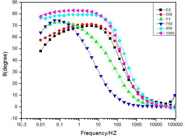 但是对于阻抗谱的图形,一般最好是把阻抗的图形画出来,而不是仅仅将频率与角度关系画出来。