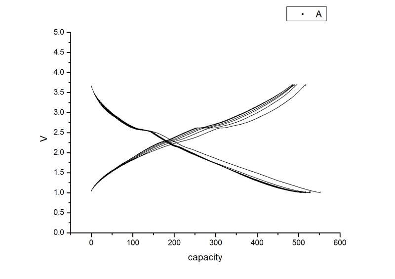 我做了一种纳米五氧化二钒正极材料,铝箔集流;负极为金属锂片;充放电区间1.0~3.7V, 比容量500mAh/g。新入此道,不知道是不是可以超水平发挥电极的性能。肯请前辈赐教~ Graph1.jpg Graph1.jpg |