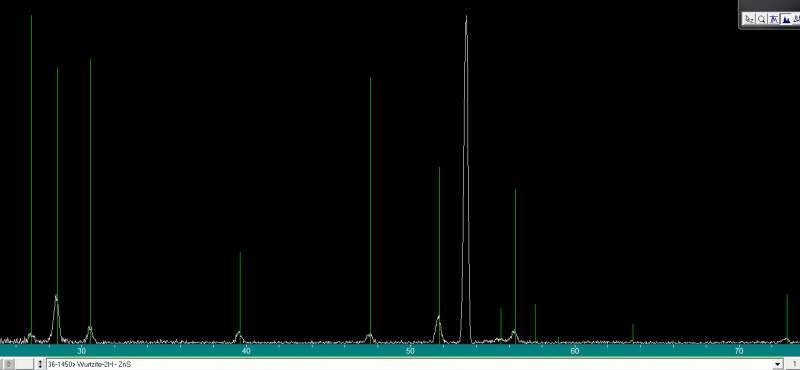 样品为硅片上镀的ZnS薄膜,Cu靶Ka线。可以确定较弱的谱线能和ZnS标准谱对应,但是在53度处的最强峰找不到对应的物质,样品混入杂质的可能性很小,不知是怎么回事?
