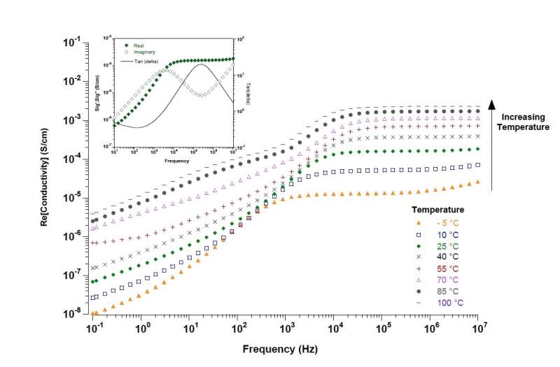 最近JACS上有一篇做PEO-PE-PEG固体电解质的,用了DC ionic conductivity测试电导率得到如下一张图,想问一下这个测试方法的原理,为什么从这个图中得到的高频的电导率值就可以认为是电解质膜的电导率? |