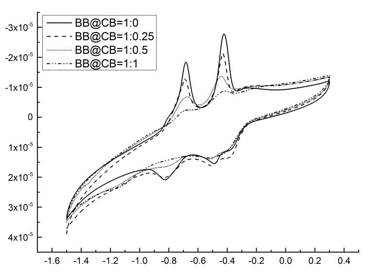 从你的图可以看出随着CB的加入量增加,峰电流逐渐下降,说明CB阻碍了BB的扩散。你从书上查一下峰电流的计算公式,我不会输入,,,扩散系数大的话,扩散速度快,所以扩散到电极表面的物质就多,而峰电流又与物质浓度成正比,所以峰电流就大。当然这只是你的反应机理是扩散控制时才适用。希望有益呵呵。 [ 发自手机版 http://muchong.com/3g ] |