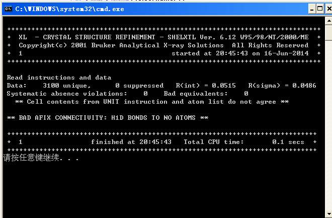 AFIX命令没有删除干净!XL提示AFIX没有作用于任何原子!