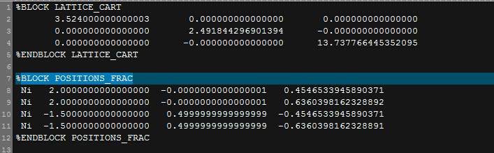 大家好,我在用MS 建立Ni的晶胞时,建立的是3*3的Ni的超级胞(如图1),大约有48多个原子,但是在Ni的cell文件中原子坐标中只有4个原子(如图2)。请教一下大神,是什么原因。谢谢。 图1 图2 |