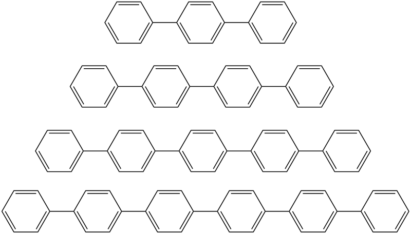 依次是对三联苯,对四联苯,对五联苯和对六联苯 分子化学式见附件图片。 多谢。呵呵!@jjxiang untitled.png |