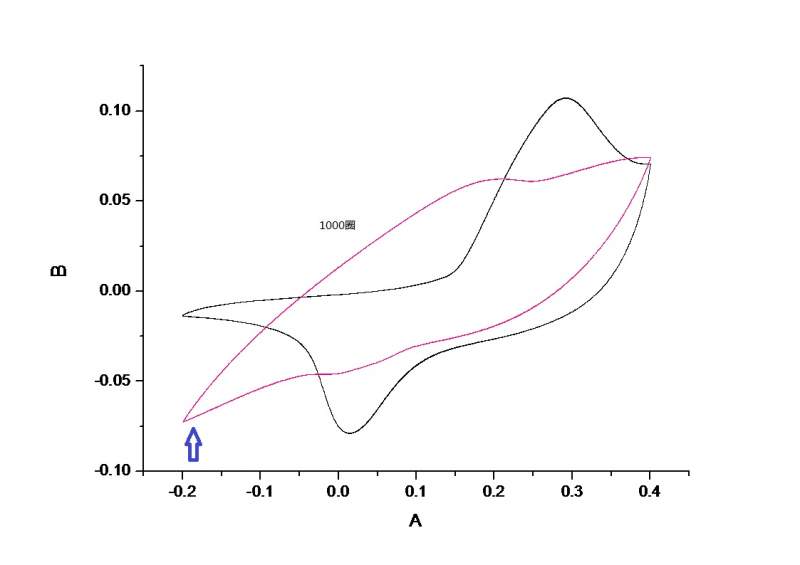求助,为什么我的cv曲线在几百圈后,转变成图中红色的曲线模样了,而且还循环挺稳定,这怎么解释啊?为什么会逐渐出现-0.2v的峰,还有在1000圈循环之后测试的阻抗曲线,高频区出现了两个圆弧是怎么回事? tansuanmeng 79 - 副本.jpg |