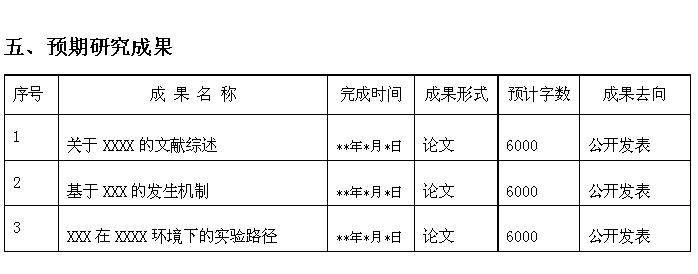 本人刚入职某一学校,之前没有申请过任何基金,现在做一个省基金的申请书,其中最后有“预期研究成果”表格有栏目是“序号、成果名称、完成时间、成果形式、预计字数、成果去向 ”我的成果预计是一系列论文,是不是在按序号1、2、3地写出预计的初定的论文名称?