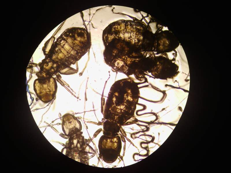 请各位大神帮帮忙,尤其是学生物学的或医生、经验人指导! 家里的棕床垫上出现白色的小虫子,肉眼不容易看见,细心的家人看见了,我用透明胶搞了几只在显微镜下拍照了,该虫子长约1毫米,粗约0.3毫米左右,形如图片。请教大家以杀之,灭绝后患。 01.jpg 02.jpg |