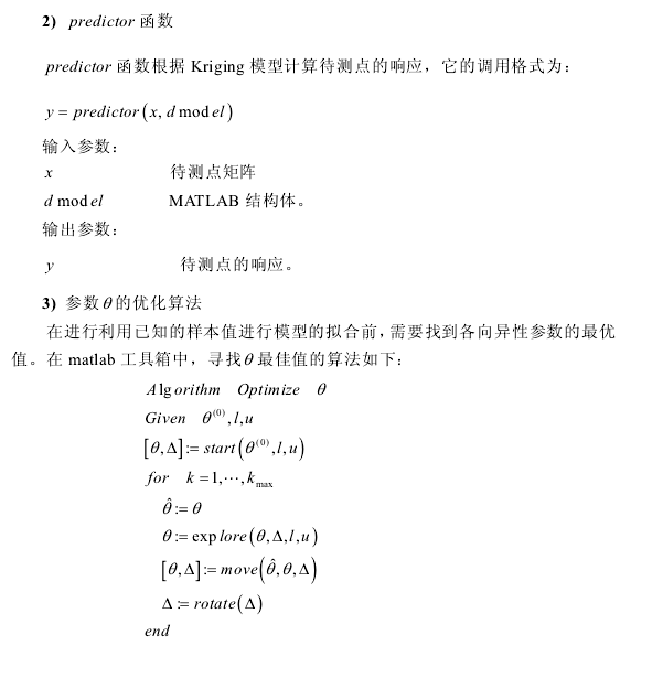 | 看了好多kriging模型的文献,看不太懂,想用matlab利用已知数据建立输入输出的kriging模型,不知道怎么弄呢。求各位大神支招 |