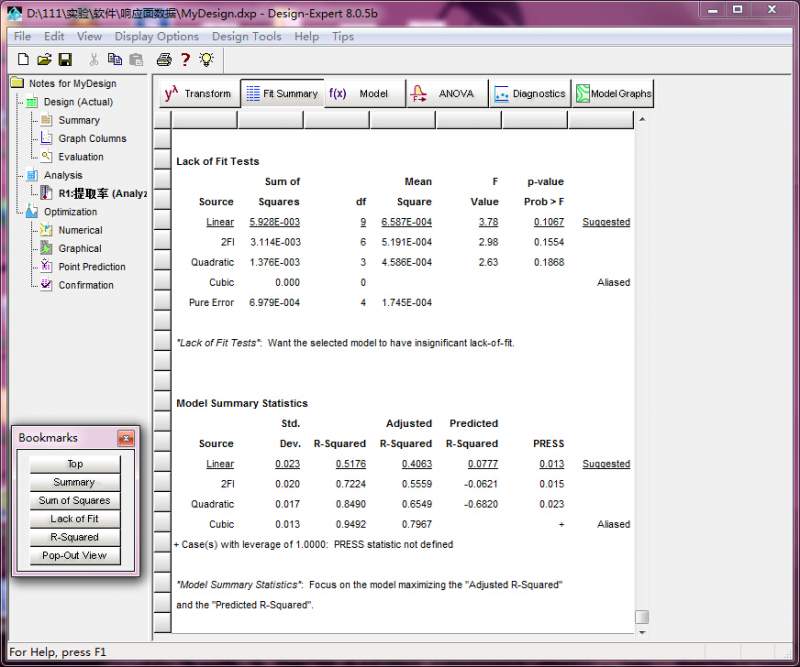 求助:响应面分析中Lack of Fit(失逆项)为0.0003显著,数据可用吗?怎样优化?