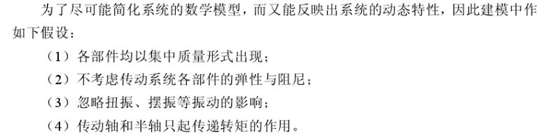 和大家交流一下!在建立汽车的传动系统模型时,文中做了这样的[img][/img]假设:在不考虑传动系统各部件弹性和阻尼的情况下,你如何反映系统的动态特性?系统的动态特性,也就是其中一部分时域响应的肯定要受到阻尼的影响,不考虑阻尼,所说的反映‘’系统的动态特性‘’?我在这里想说的是,作者不应该加这句话‘’而又能反映出系统的动态特性‘’! friday.png |