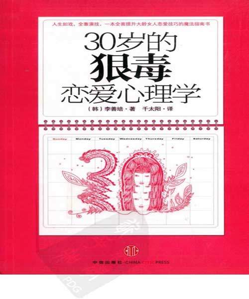 内容介绍: 女人30意味着什么,30岁的女人连个男朋友都没有,在未来的三年中完全无可能结婚,周末与外甥混在一起,在25岁时还可以称之为独立、潇洒,可30岁呢,总有人问你:有对象没,不是没人追,只是没有合适的,不是眼光高,只是没有感觉,也许有时想恋爱,想让自己不再寂寞,可是那个人却没出现,不想随随便便爱,因为有一种单身叫“宁缺勿滥”。 目录: 序言 只会等待的单女是找不到对象的 Step one 人到30,如今你还单身的原因 Step two 30岁谈恋爱,一开始就要与众不同 Step three 恋爱能持久的秘密 .. 1.jpg AnnF书库: https://muchong.com/bbs/space.php?uid=1223787&view=thread |