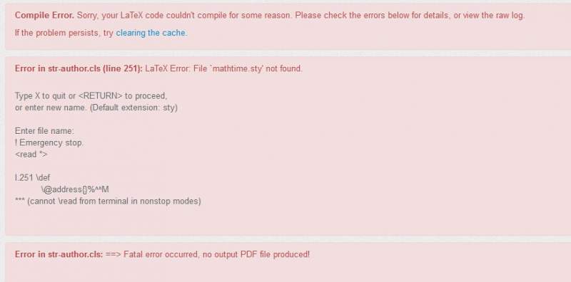 Error in str-author.cls (line 251): LaTeX Error: File 'mathtime.sty' not found