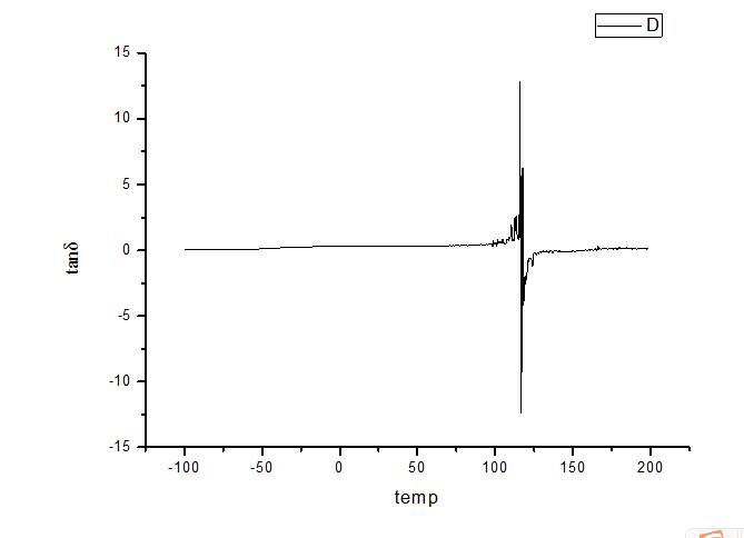 我的有机硅水性聚氨酯胶膜DMA测试,采用的拉伸模式,频率1HZ,升温速率3/min。但是,测出的损耗因子tanδ的曲线很奇怪,请问这是为什么呢?是不是胶膜在100度左右有点熔融?还是什么原因?我看别人做的都挺正常的啊[img][/img]。我大致做了一下损耗因子的曲线,有没有人可以帮我看一下呢 @@@$1`L[BHTB(B`(Z`V7452.jpg |