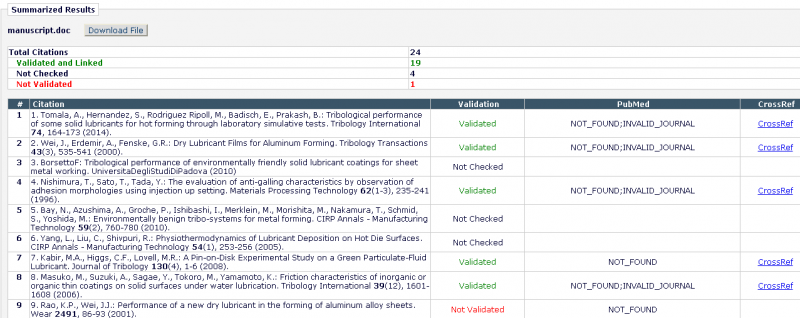 一:文章上传到Tribology letters之后有一个参考文献的检测结果,