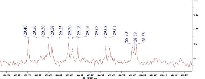 这个化合物碘化铋钾显色 应该是生物碱类 量很少 刮大板子出来的碳谱不是很好辨认,大家看一下 尤其是在29左右上的碳 如何处理是不是杂质,谢谢诸位了!