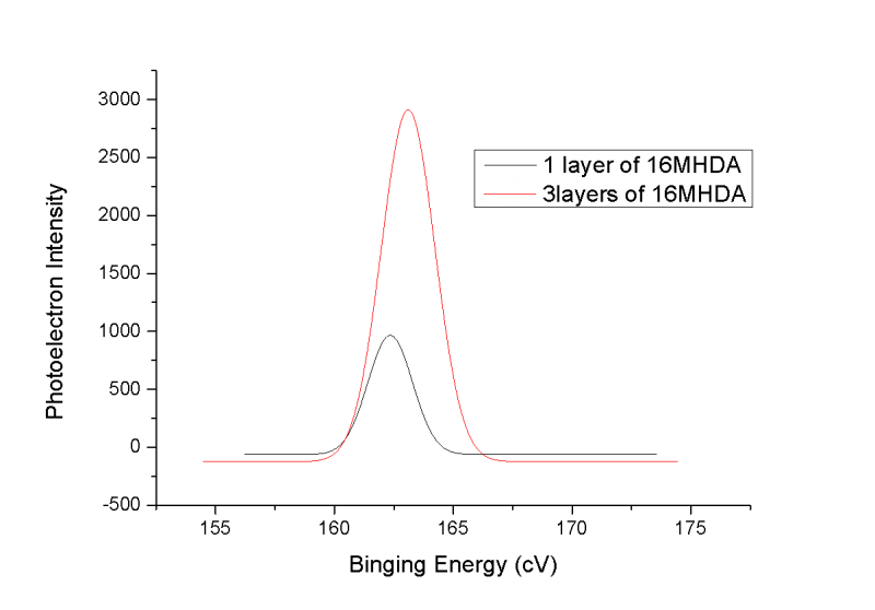 请教各位,我做了两个XPS测试。其中一个是只有单层16MHDA在金表面的SAM。另外一个是三层16MHDA在金表面的SAM。请问第二层和第三层分子中SH连在Cu2+上之后,S是什么状态啊。我测得XPS图中怎么显示有游离的SH而且很多。样品已经洗过很多次不应该很多残留啊。SH连在Cu2+之后是不是还是以SH的形式存在呢?有相关的文献可以推荐吗?谢谢。投稿补充数据,急急急。