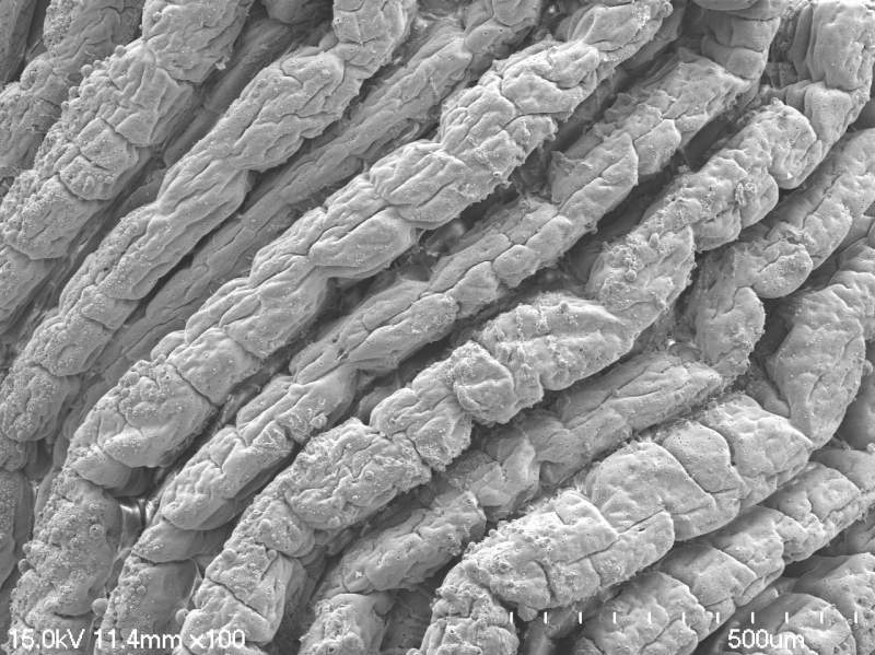 本人做了几组关于肠道粘膜褶皱的扫描电镜,能看到褶皱变的更加光滑,褶皱更密,但是不知道用什么指标来量化,求大神指导,附图一张