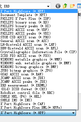 选第9个:General ASCII scan (*.ASC),然后更改扩展名ASC为txt即可,默认数据格式每行两列,前为2theta、后为强度counts。