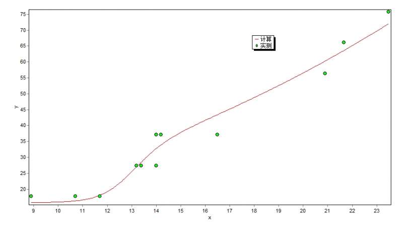 大家好!本人刚刚入手学习matlab,急需帮助! 已知:x=[8.9 11.7 13.2 13.4 14 14.2 14 10.7 21.671 23.487 20.902 16.507]; y=[17.698 17.698 27.365 27.365 37.031 37.031 27.365 17.698 66.03 75.696 56.364 37.031]。 我并不知道x和y现在存在一个什么对应关系,指数,高斯,傅里叶,多项式等等。但是却想拟合出y相对于x的某个函数(使最多的点落在曲线上),应该怎么做才能判断出数据符合哪个拟合模型,并求出拟合函数?急求指导~谢谢大家! |