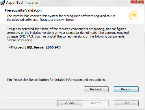 aspen plus v7.3安装时出现问题,安装到以下步骤就没法往下进行了,见下图1,点击图1中的report生产以下报告,见图2.怎么办呀(我的电脑是win7,32位)