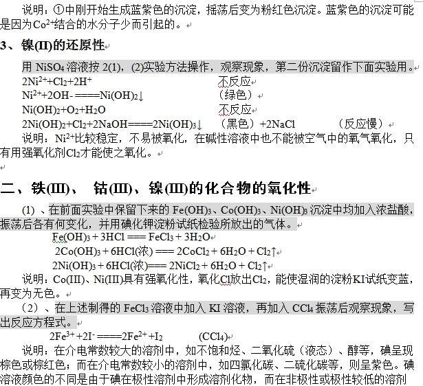 求无机化学实验课后思考题答案,北京理工大学出版社,李铭岫主编