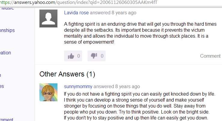 NO: "struggle" / "struggling" / ... spirit YES: "fighting spirit" 更强: "indomitable fighting spirit" --------------------------- https://answers.yahoo.com/questi ... 061126060305AAKm4fT --------------------------- the Fighting Irish logo.jpg fighting spirit 定义.jpg |