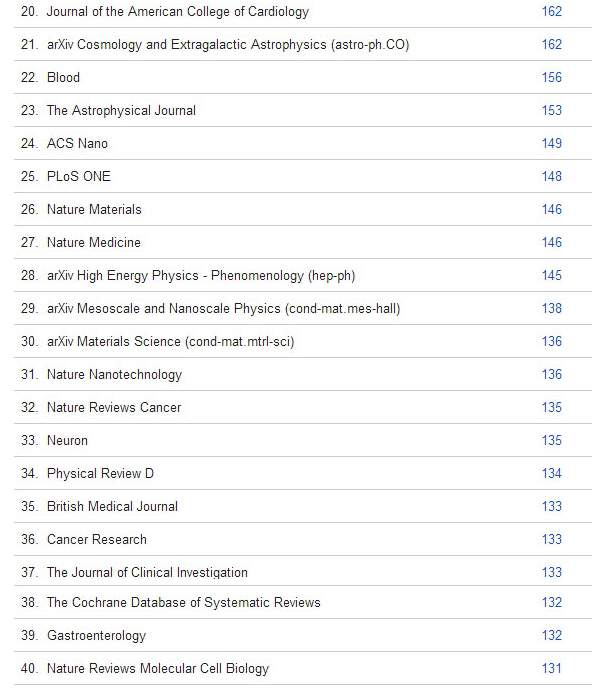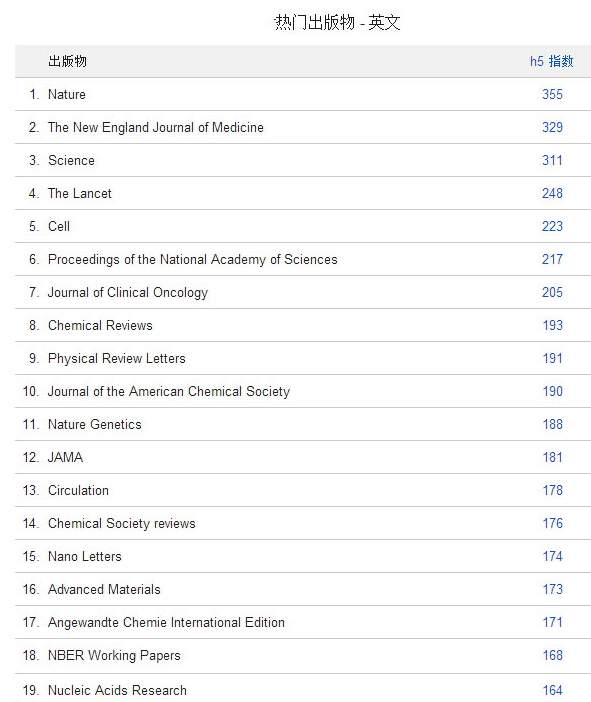 谷歌学术发布2014年度学术期刊排名,欢迎围观已有17人参与