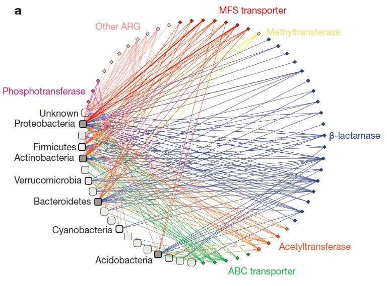 nature、science等高水平杂志上,经常有网络形的示意图,表示各单位间的联系,如下面的例子。