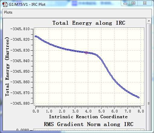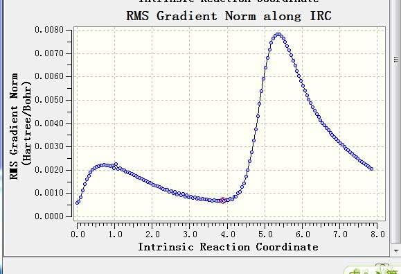 irc向forward方向的分析正常结束,但是能量曲线并不是一直下降的趋势,中间出现一个鼓包,梯度曲线也如此,请大神看看这是什么原因造成的。谢谢
