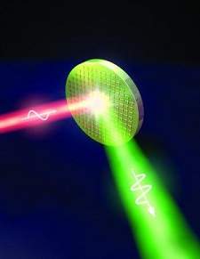 “多量子阱半导体异质结构”已经通过人工方式生成,它们能产生有用的非线性光学效应,远远超过传统非线性光学材料所产生的效应。但它们的应用范围受到几何限制,因为它们要求入射光垂直于半导体层被偏振。现在,德州大学奥斯汀分校的Mikhail A. Belkin等人通过将一个等离子激元元表面耦合到半导体异质结构上发现,这种几何限制可以被除去,从而消除了这些非线性光学元件在使用上所受到的取向限制。(来源:生物360) 原标题:Researchers invent 'meta mirror' to help advance nonlinear optical systems Researchers at the Cockrell School of Engineering at The University of Texas at Austin have created a new nonlinear metasurface, or meta mirror, that could one day enable the miniaturization of laser systems. The invention, called a “nonlinear mirror” by the researchers, could help advance nonlinear laser systems that are used for chemical sensing, explosives detection, biomedical research and potentially many other applications. The researchers’ study will be published in the July 3 issue of Nature. The metamaterials were created with nonlinear optical response a million times as strong as traditional nonlinear materials and demonstrated frequency conversion in films 100 times as thin as human hair using light intensity comparable with that of a laser pointer. Nonlinear optical effects are widely used by engineers and scientists to generate new light frequencies, perform laser diagnostics and advance quantum computing. Due to the small extent of optical nonlinearity in naturally occurring materials, high light intensities and long propagation distances in nonlinear crystals are typically required to produce detectable nonlinear optical effects. The research team led by UT Austin’s Department of Electrical and Computer Engineering professors Mikhail Belkin and Andrea Alu, in collaboration with colleagues from the Technical University of Munich, has created thin-film nonlinear metamaterials with optical response many orders of magnitude larger than that of traditional nonlinear materials. The scientists demonstrated this functionality by realizing a 400-nanometer-thick nonlinear mirror that reflects radiation at twice the input light frequency. For the given input intensity and structure thickness, the new nonlinear metamaterial produces approximately 1 million times larger frequency-doubled output, compared with similar structures based on conventional materials. 图来源:The University of Texas at Austin “This work opens a new paradigm in nonlinear optics by exploiting the unique combination of exotic wave interaction in metamaterials and of quantum engineering in semiconductors,” said Professor Andrea Alu. The metamaterial at the basis of this unusual optical response consists of a sequence of thin layers made of indium, gallium and arsenic on the one hand and aluminum, indium and arsenic on the other. The researchers stacked approximately 100 of these layers, each between 1 nanometer and 12 nanometers thick, and sandwiched them between a layer of gold at the bottom and a pattern of asymmetric gold nanocrosses on top. The thin semiconductor layers confine electrons into desired quantum states, and gold nanocrosses resonate at input and output frequencies to enable the the nonlinear optical response of the mirror. The realized mirror converts light from a wavelength of 8 micrometers to 4 micrometers; however, the structures can be tailored to work at other wavelengths, from near-infrared to mid-infrared to terahertz. “Alongside frequency doubling, our structures may be designed for sum- or difference-frequency generation, as well as a variety of four-wave mixing processes,” said UT Austin graduate student Jongwon Lee, the lead author on the paper. “Our work unveils a pathway towards the development of ultrathin, highly nonlinear optical elements for efficient frequency conversion that will operate without stringent phase-matching constraints of bulk nonlinear crystals,” said Professor Mikhail Belkin. (来源:美国德州大学奥斯汀分校;http://www.utexas.edu/news/2014/07/02/meta-mirror-engineering/) 原文检索:"Giant nonlinear response from plasmonic metasurfaces coupled to intersubband transitions", Jongwon Lee et al., Nature, 2014, DOI: 10.1038/nature13455。 |