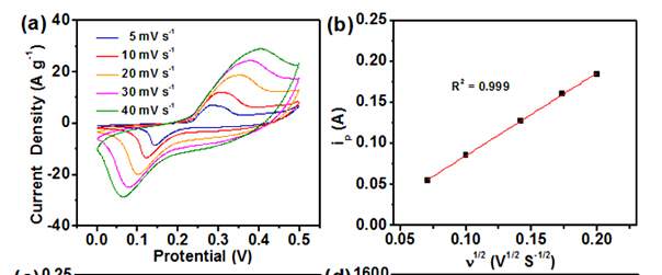 循环伏安曲线中的峰电流和扫速之间的关系