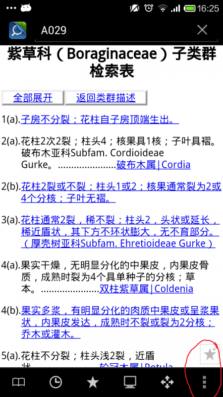 尊重作者原创,附上原作链接:http://planta.cn/forum/viewtopic.php?t=28888#userconsent# 小伙伴们可以去膜拜大神 本人亲测,十分的好用,最主要的还是离线的,怎一个“爽”字了得! 具体攻略: 1、安装MDict这个应用,可以下载本帖附件,也可以到官网自己下载:http://www.octopus-studio.com 2、下载需要的词库,具体词库可以到原作链接中找,我就不一一放上来了:http://planta.cn/forum/viewtopic.php?t=28888#userconsent# 3、运行软件,点击图片1所示的右下角红色圈圈里的3个点那个图片 4、在弹出来的对话框里点击“设置” 5、在“设置”菜单下点击“词库目录” 6、然后会弹出对话框,可以更改词库目录,也可以用默认的,我本人用的是默认的 7、把本帖附件中词库或其它来源的词库复制到上一步设置的词库目录中即可 这样就可以用了,一点也不卡,而且可以检索,除了植物志还支持许多别的词库,类似百科啊神马的,欢迎大家使用 |