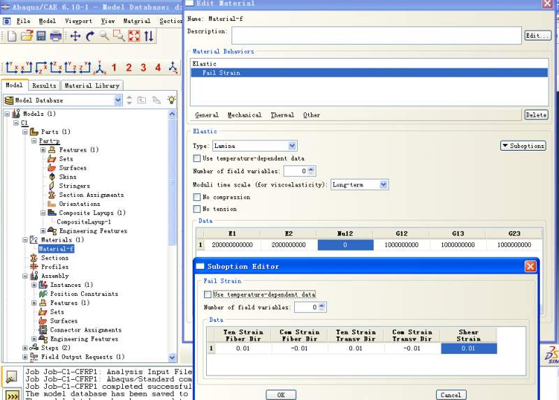 abaqus中纤维材料最简单的elastic-fail strain为什么实现不了....