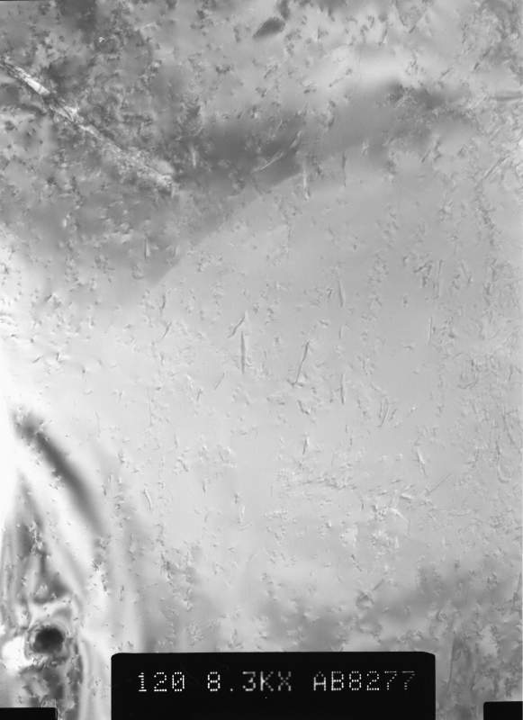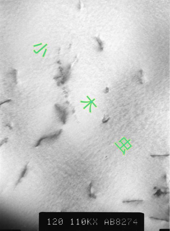 求大神知道 请问,图1中分布的很多长条状形貌是第二相还是位错? 图2是图1的局部放大图。 图3中白色的区域,像三只手指一样,是第二相形貌吗? 图4中分布的很多长条状形貌是第二相还是位错? 位错一般是什么样子的呢?我衍射斑点显示有第二相,可是他们说图1中没有第二相,麻烦大神给看看,给找找! (图3是暗场像;其他都是明场像) 1.jpg 2.jpg 3.jpg 4.jpg |