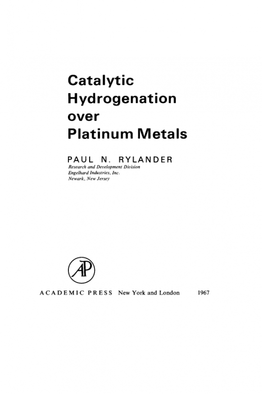 钯催化1967年经典巨著原版<Catalytic Hydrogenation Over Platinum Metals>