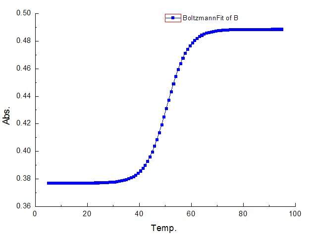 用紫外熔融法(UV Melting)测定DNA的Tm值,用origin作图之后,如何计算光吸收增加的中点对于的温度:Tm值