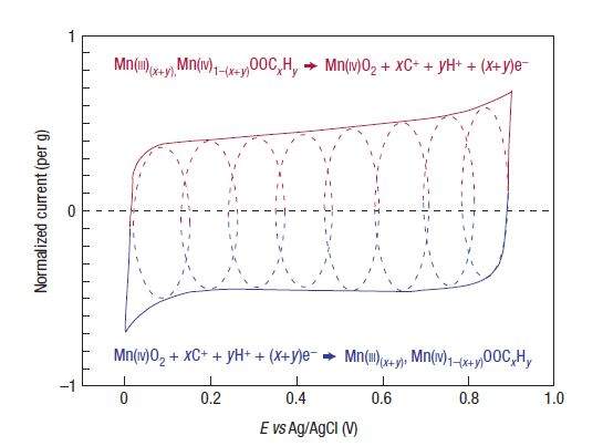 | 为什么二氧化锰做超电容的文献循环伏安图都没有氧化还原峰? |