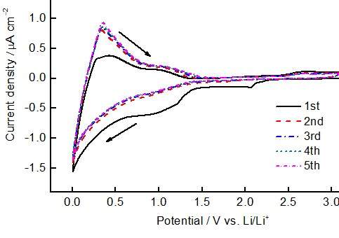 各位大神,我测试的循环伏安图,为Li/电解液/石墨,请问大神如何计算锂的容量和效率啊