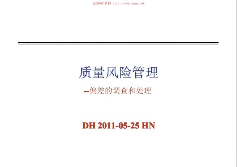 2011年8月企业变更、偏差、CAPA、质量风险管理 培训PPT(全套资料)