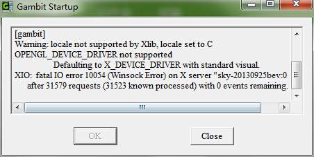 gambit打开出现错误,自己跳出进度框,不知道怎么解决