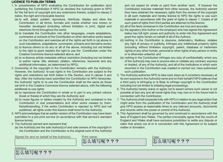 以前投过Sci.Rep的前辈们,下面的表格怎么填写呢,老师不在家,我只能自己弄,谢谢各位了!!!