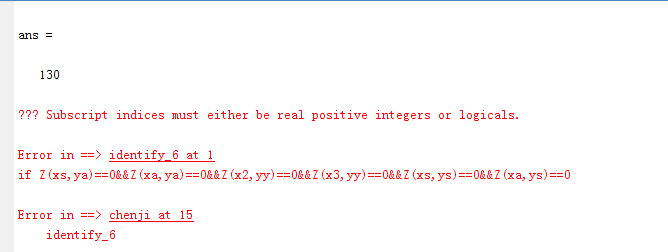 ??? Subscript indices must either be real positive integers or logicals.出现了这样的错误,不知道哪里出了错,求明白人,给我说说呗!!!! 1.png 2.png 3.png 4.png |