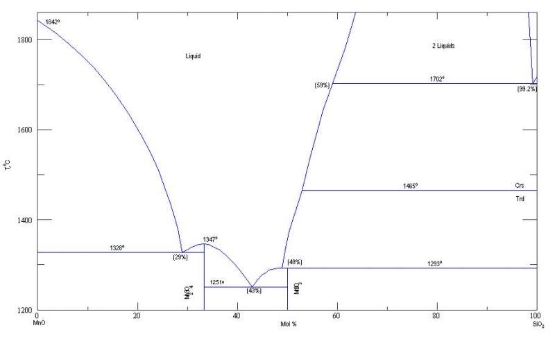MnO2能与SiO2形成最低液相温度至少也得到1200或以上,准确点应该是1251度
