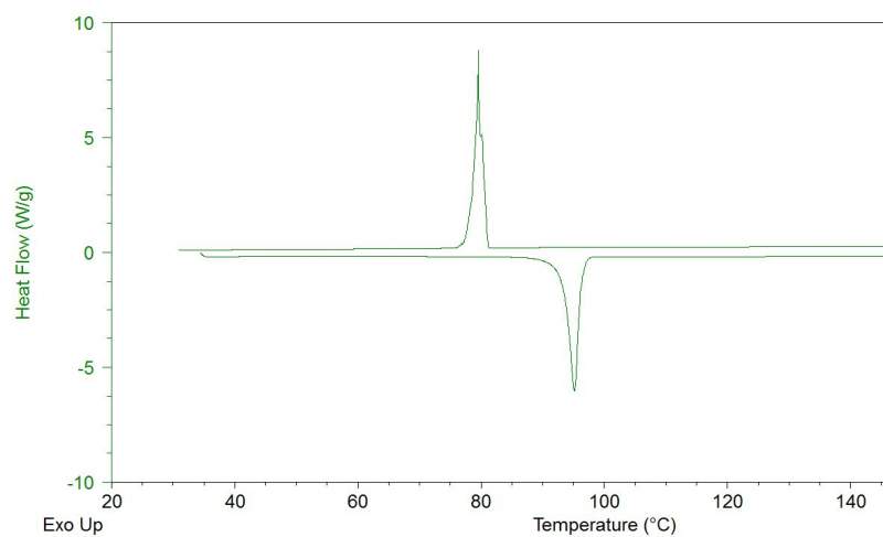 而DSC在某一降温速率下降温得到的峰值,指的是目标物质从液态转化为固态在该降温速率下的固化过程,它是个动力学过程,受降温速率的影响