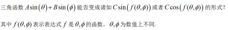 令:A*Sinθ+B*sinφ=C*Sin[f(θ,φ)]
