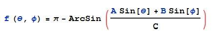 Sin[f(θ,φ)]=[A*Sinθ+B*sinφ]/C