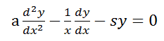 首先,这不是二阶常微分方程,“常”表示y'',y',y的系数都是常数,形式为ay''+by'+cy=0,这类问题可以用特征方程求解。你的问题是二阶非线性微分方程。 我想了下也不知道怎么解,用matlab算: >> syms a s y x Y=dsolve('a*D2y-Dy/x-s*y=0','x') Y = C3*x^((a + 1)/(2*a))*besselk(-(a + 1)/(2*a), -(s^(1/2)*x)/a^(1/2)) + (C2*x^((a + 1)/(2*a))*besseli(-(a + 1)/(2*a), (s^(1/2)*x)/a^(1/2)))/(-1)^((a + 1)/(2*a)) >> pretty(Y) a + 1 ----- / 1/2 \ 2 a | a + 1 s x | a + 1 C2 x besseli| - -----, ------ | ----- / 1/2 \ | 2 a 1/2 | 2 a | a + 1 s x | \ a / C3 x besselk| - -----, - ------ | + ------------------------------------ | 2 a 1/2 | a + 1 \ a / ----- 2 a (-1) >> 解中由用到bessel函数 |